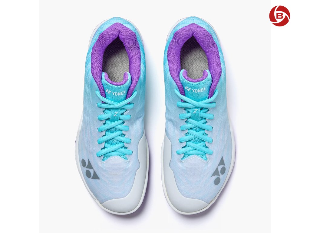 Yonex Aerus Z2 Indigo jsou dámské badmintonové boty vytvořené pro hráčky, které hledají lehkost, pohodlí a špičkový výkon. Model zaujme svěžím designem v tyrkysovém odstínu doplněném o fialové detaily.
