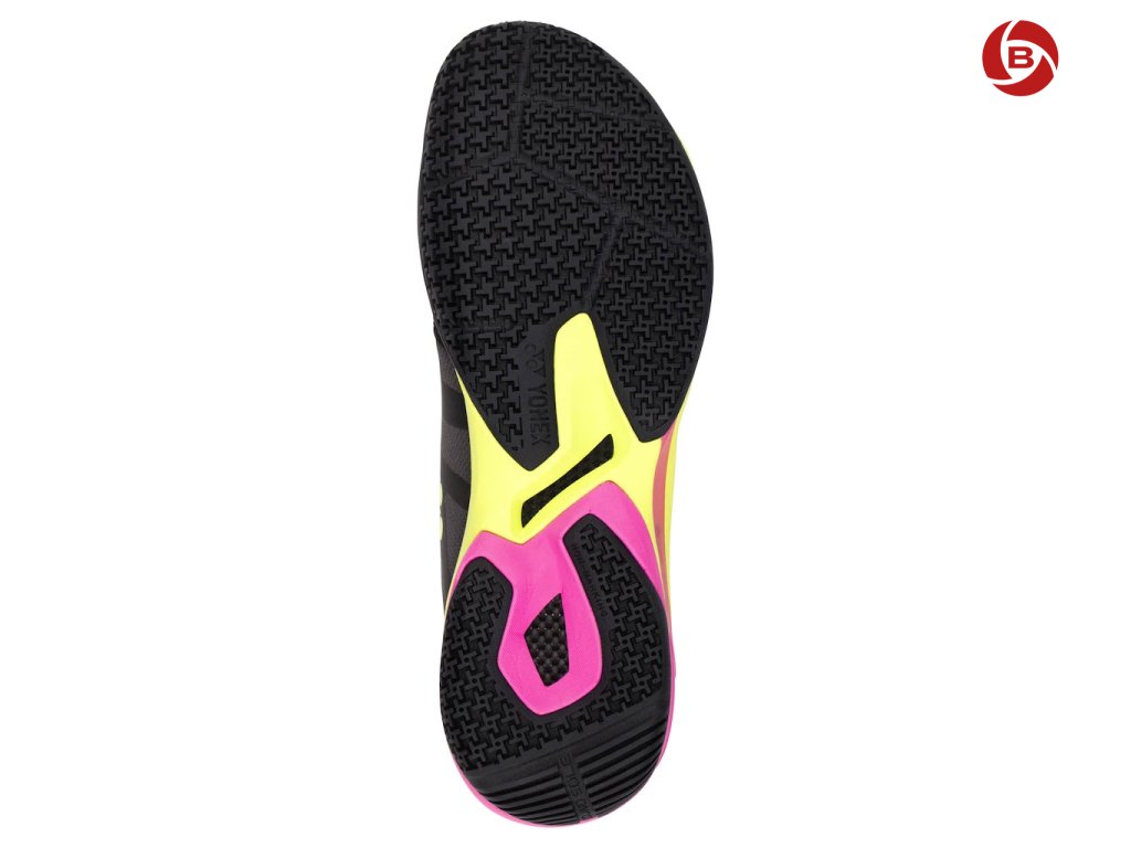 Kombinace lehkého svršku ze syntetické pryskyřice a odolné gumové podrážky zaručuje dlouhou životnost a výbornou přilnavost na halovém povrchu bez zanechávání stop. Obuv je navržena tak, aby podporovala rychlé starty, brzdění i dynamické výpady typické pro badminton.