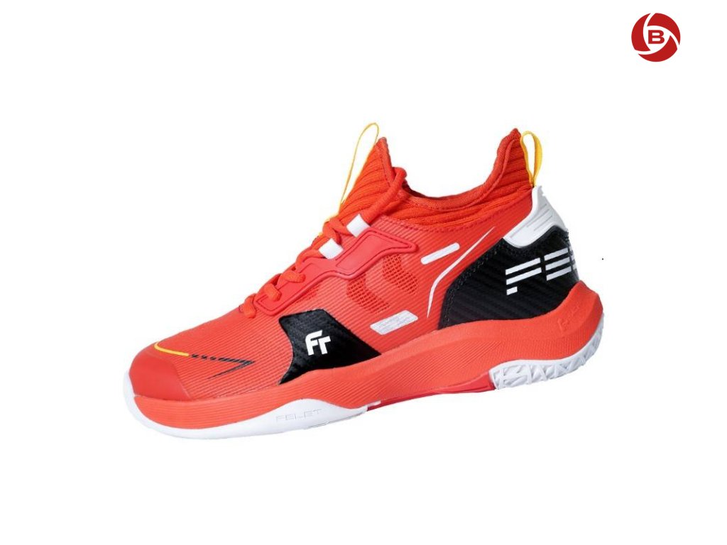 Sálová obuv Felet Flying Pro V2 Red je druhá generace profesionální badmintonové obuvi navržené pro intenzivní zápasovou i tréninkovou zátěž. Tento model spojuje moderní konstrukci, pokročilé tlumicí technologie a výrazný sportovní design, který podtrhuje její turnajový charakter.