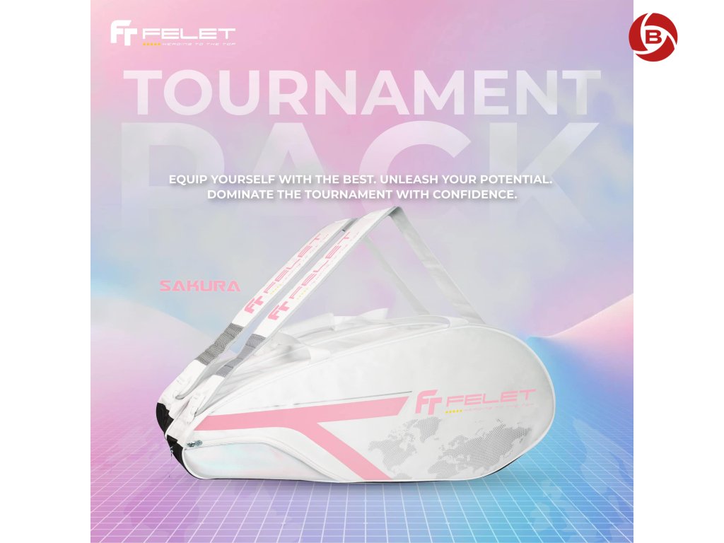 Felet Tournament Pack Pink v bílo-růžovém provedení vyniká svým jemným a elegantním designem, který osloví sportovce preferující stylové vybavení. Tato taška nejen že dobře vypadá, ale také poskytuje praktické vlastnosti potřebné pro badminton a tenis, což z ní činí ideálního společníka na hřišti.