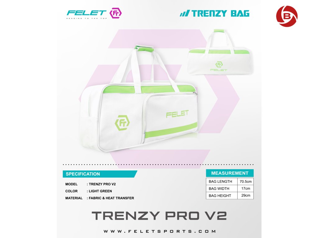 Felet Trenzy Pro V2 Green je turnajová badmintonová taška s moderním dvoubarevným designem, dvěma hlavními komorami a praktickými doplňky, která uspokojí potřeby rekreačních i soutěžních hráčů.