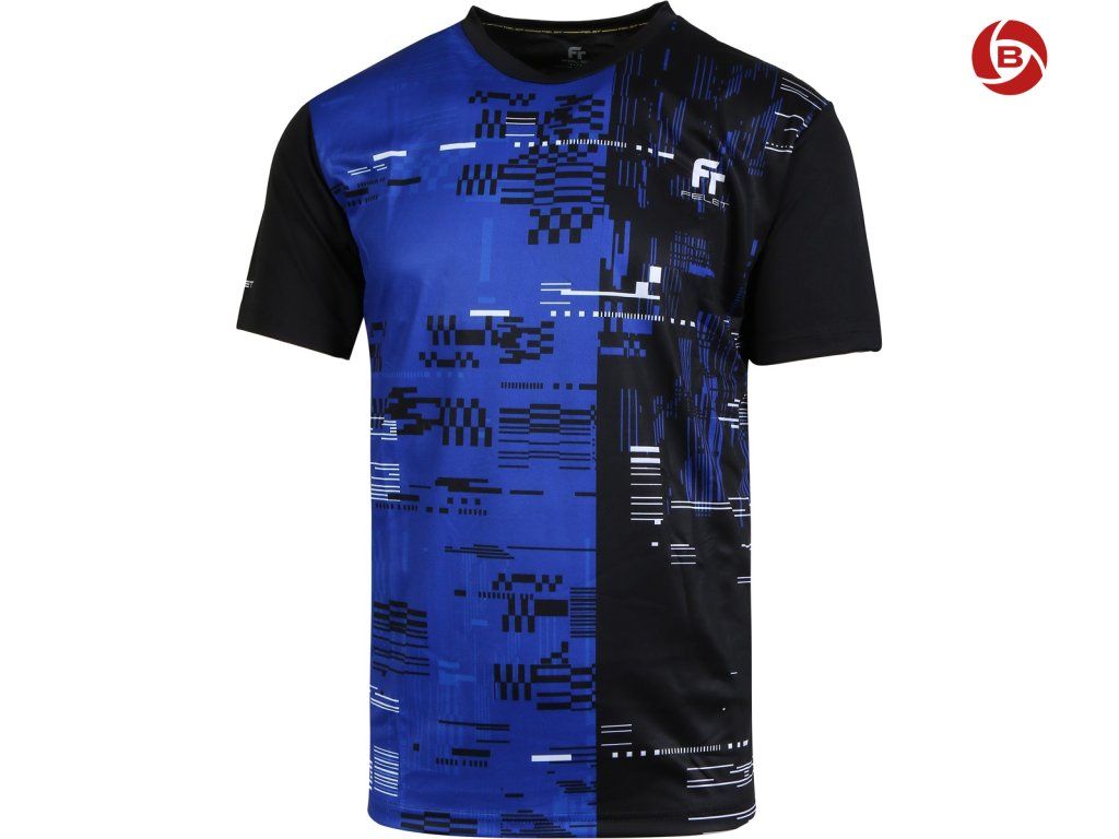 Design trička je výrazný a kontrastní, s černo-modrou grafikou, která působí dynamicky a moderně. Modrá část přidává energii a svěžest, zatímco černá část zajišťuje elegantní kontrast. Digitální vzory a prvky přidávají jedinečnost, díky které se toto tričko stane skvělou volbou pro sportovce i milovníky moderní módy. Díky elastickému materiálu a ergonomickému střihu zaručuje tričko maximální volnost pohybu a pohodlné nošení.