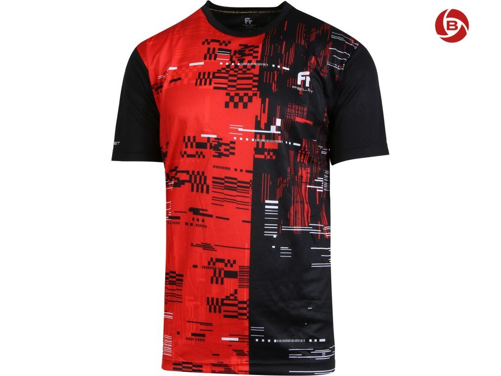 Design trička je výrazný a kontrastní, s černo-červenou grafikou, která působí dynamicky a moderně. Červená část přidává energii a živost, zatímco černá část zajišťuje elegantní kontrast. Digitální vzory a prvky přidávají jedinečnost, díky které se toto tričko stane skvělou volbou pro sportovce i milovníky moderní módy. Díky elastickému materiálu a ergonomickému střihu zaručuje tričko maximální volnost pohybu a pohodlné nošení.